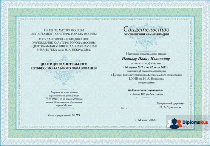 По законодательству руководитель предприятия может требовать прохождения повышения квалификации своими сотрудниками не реже одного раза в пять лет. Если Вы не хотите ходить на курсы по ряду личных причин или не можете этого делать по состоянию здоровья, но нуждаетесь в получении такого документа, смело обращайтесь к нам! Мы быстро изготовим Вам качественное свидетельство, о происхождении которого будете знать только Вы.
